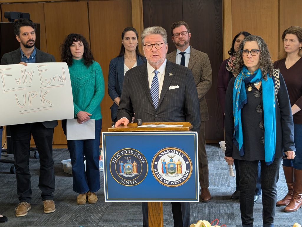 El senador del estado de Nueva York, Pete Harckham, y la asambleísta Dana Levenberg, junto a padres y educadores locales, pidieron una mayor capacidad y financiación del Pre Jardín de Infantes Universal (UPK) para los distritos escolares fuera de la ciudad de Nueva York en 2027.