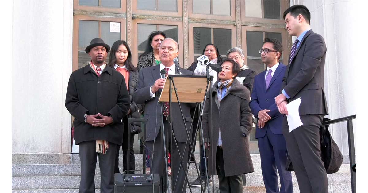 El legislador de Westchester, David Imamura, y miembros de AAPI de Westchester, durante la conferencia de prensa de hoy jueves pidieron que incluya en los calendarios escolares las celebraciones de Calls Diwali y Eid.