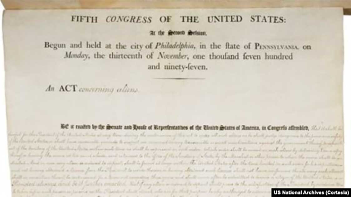 Adoptada en 1798, cuando el joven EEUU estaba al borde de una guerra con Francia, es la última que queda en pie de las cuatro Leyes de Extranjería y Sediciónaprobadas por el V Congreso y el apoyo del entonces presidente John Adams.