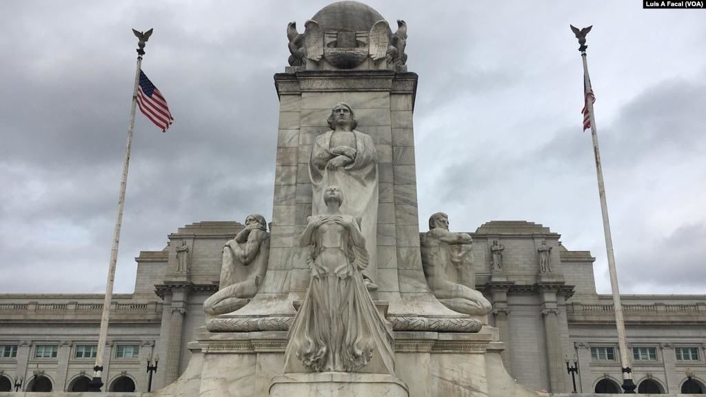 Estatua de Cristóbal Colón en Washington, D.C. (Foto: Luis A. Facal/VOA).