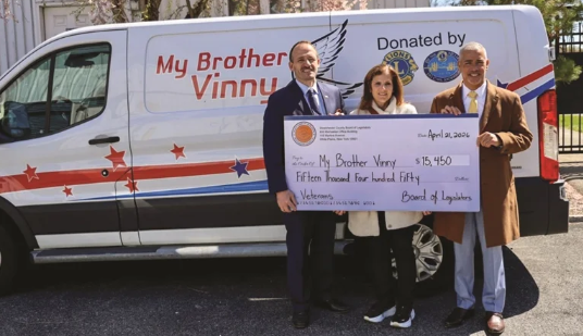 El presidente de la Junta de Legisladores de Westchester, Vedat Gashi (D–New Castle, Ossining, Somers, Yorktown), y el legislador Colin D. Smith (D–Cortlandt, Peekskill, Yorktown) entregaron el martes anterior un cheque simbólico por valor de $15.450 a la organización no lucrativa My Brother Vinny, Inc., con sede en Yorktown, que proporciona muebles, artículos para el hogar y enseres domésticos, gratis, a veteranos estadounidenses de Nueva York que anteriormente se encontraban desamparados.  Los fondos, ayudarán a cubrir los costos operativos que no logran ser cubiertos mediante donaciones en especie.