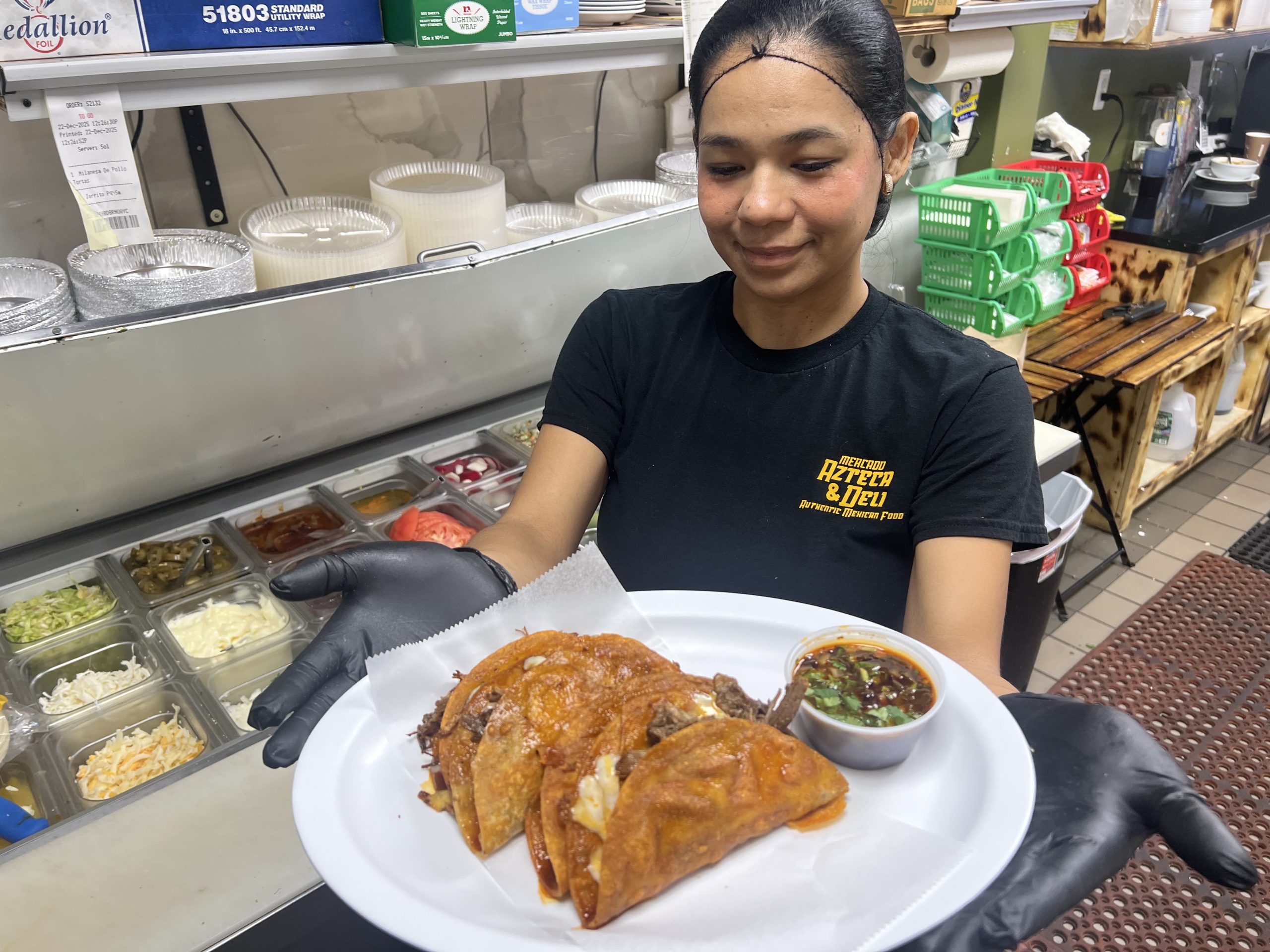 “Mi hijo me ayudo a crear un nuevo platillo llamado “El Rey azteca”, que viene con chorizo, carne asada, pechuga, camarón, aguacate con arroz frijoles, cebollita Cambray y tortillas”, explicó Galindo sobre las innovaciones en el menú del restaurante, a lo que ha agregado un “guacamole con carne asada”, que se sirve con chips.