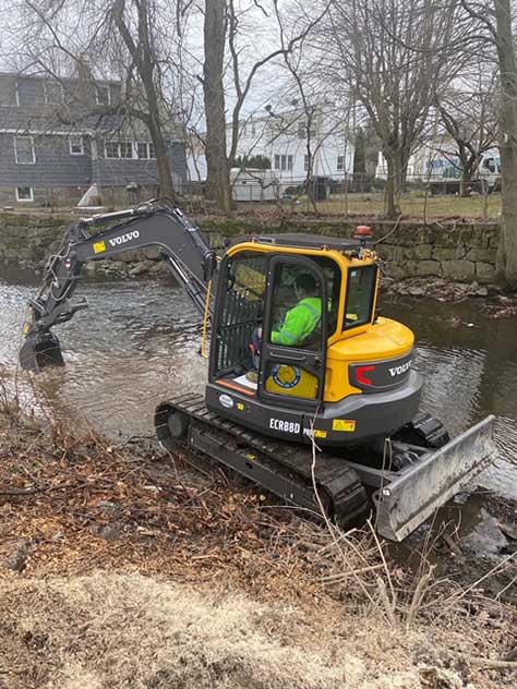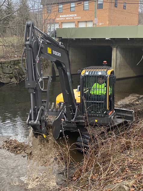 La Villa de Mamaroneck ha comprado recientemente su propia maquinaria para usar en los ríos, para eliminar las obstrucciones y mejorar el flujo de agua a través de nuestra comunidad y hacia el canal del océano.