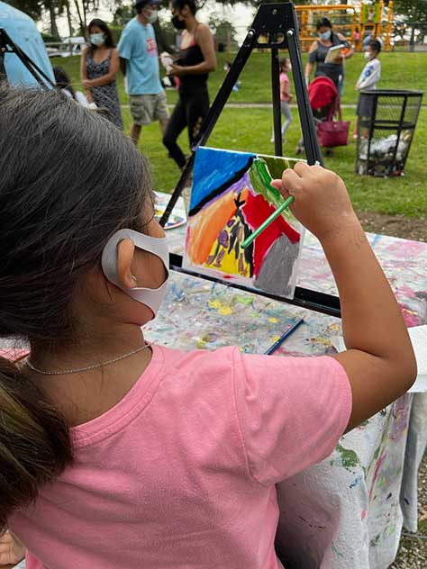 Unos veinte niños hispanos de White Plains, que asisten al programa de Alfabetización Temprana en el Centro Hispano Inc., participaron en una actividad de pintura en el Parque Druff ubicado en South Lexington Avenue, en White Plains, organizado en conjunto con ArtsWestchester y su ArtsMobile.