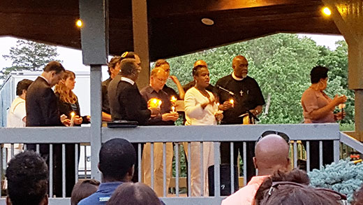 Residentes de Port Chester, Rye y Greenwich realizaron en Lyon Park, Port Chester una vigilia en honor a las víctimas del acto de terrorismo en la iglesia Emanuel AME Church, que cobró la vida de nueve personas. Dio la bienvenida el alcalde Dennis Pilla, y reflexiones de la reverenda Natalie Wimberly de St. Frances AME Zion Church, el Pastor Jim O’Hanlon de St. Paul’s Lutheran Church, el padre Hilario Albert de St. Peter’s Episcopal entre otros clérigos participantes. La vigilia fue iniciada por Port Chester/Rye Branch of NAACP.
