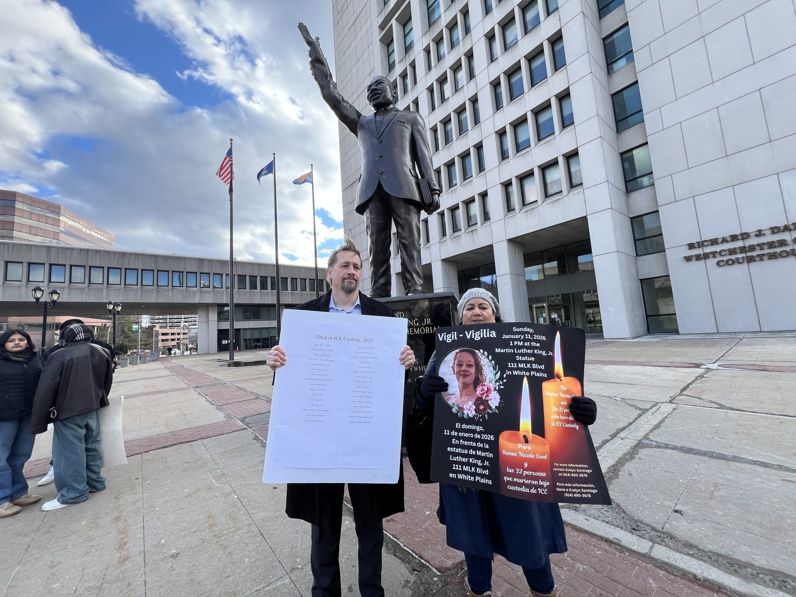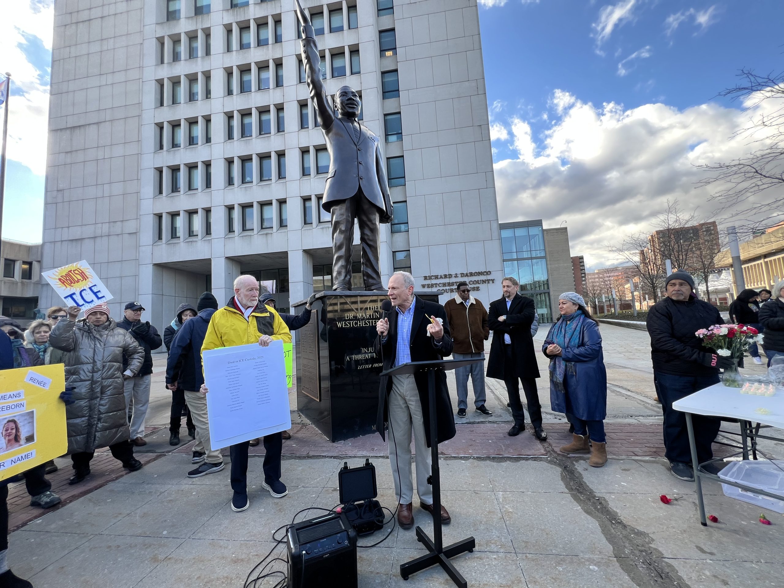 El domingo anterior el frio era intenso en Westchester, pero el público no dudó en dirigirse a la Plaza que erige el monumento a Martin Luther King Jr en la avenida que lleva el nombre del líder de los derechos civiles, en White Plains, Allí se realizó una vigilia por la muerte de Renee Goods en Mineápolis por disparos de ICE. La vigilia fue convocada por los miembros del Comité Demócrata de la ciudad de White Plains.
