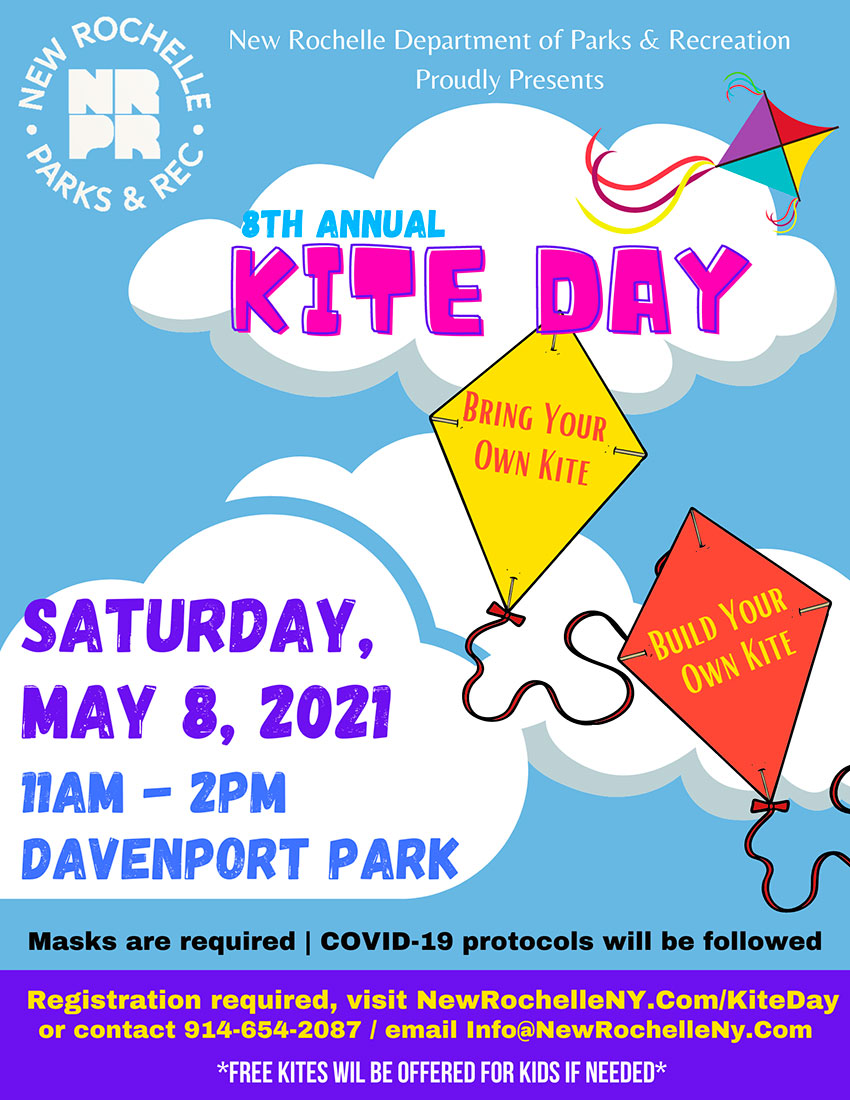 El Departamento de Parques y Recreación de la ciudad de New Rochelle, anuncia que realizará su Octavo Evento Anual del Día de la Cometa, este sábado 8 de mayo, en el parque Davenport Park.